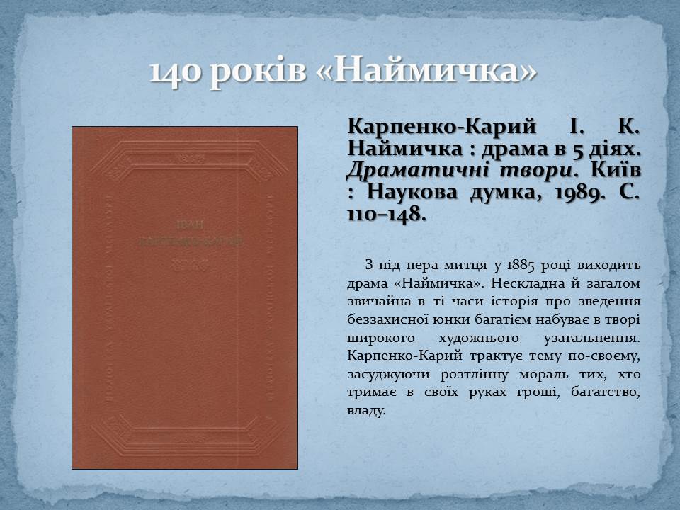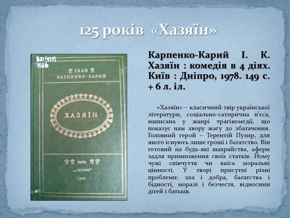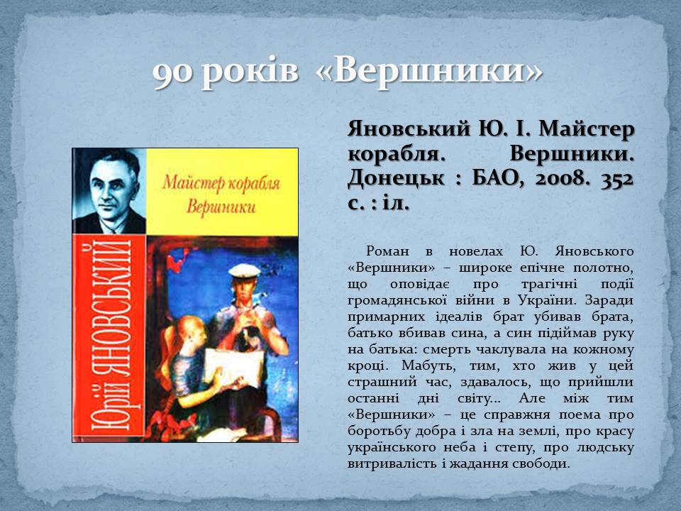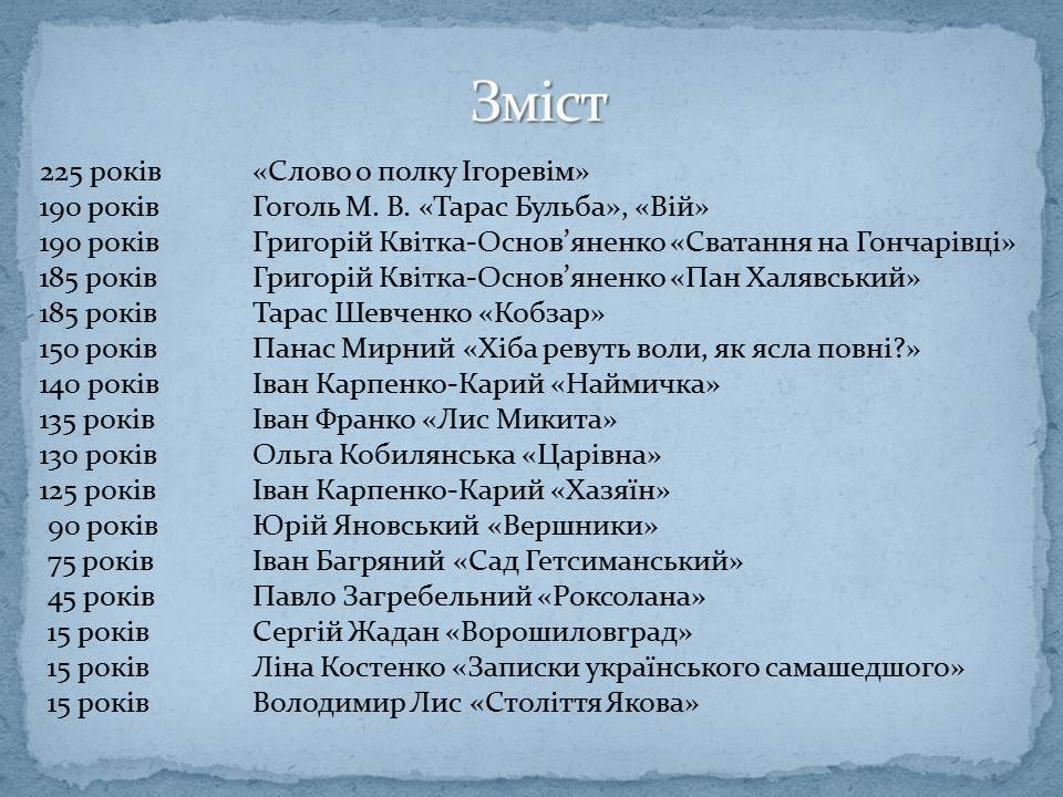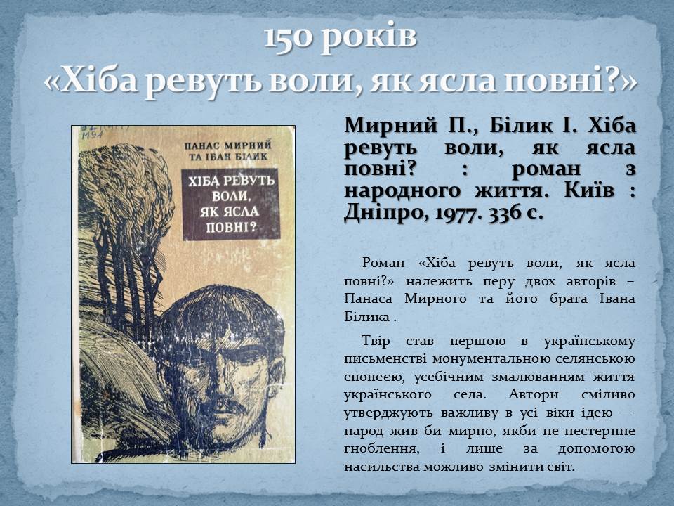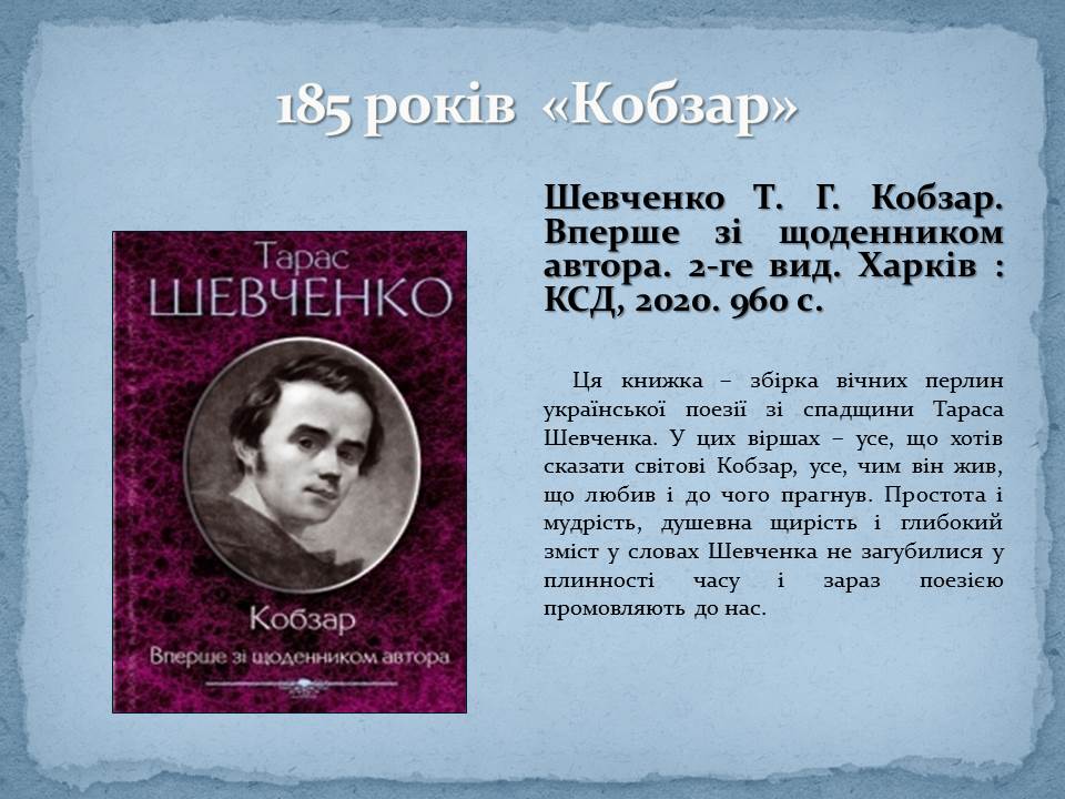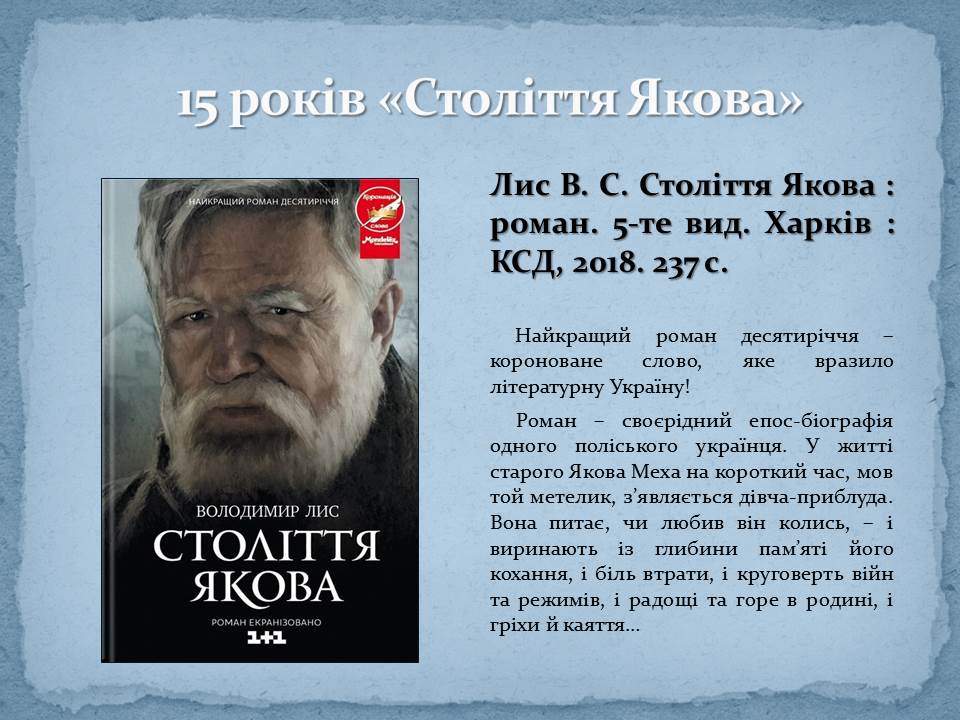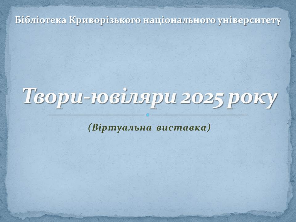 Бібліотека презентує віртуальну виставку «Твори-ювіляри 2025 року». Експозиція розкриває багатство фондів художньої літератури бібліотеки, дозволяє ознайомитись з творами українських письменників, які варто знати, читати, розуміти. Якісна література допомагає осягнути нюанси певного часу. Адже саме письменник, як ніхто інший, має сили та наснагу хоробро дивитись в очі дійсності й не приховувати правду.