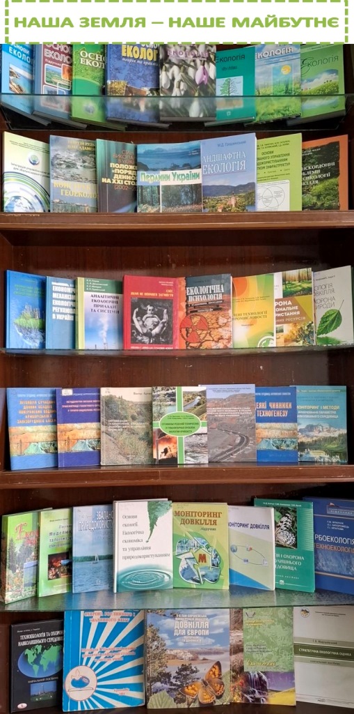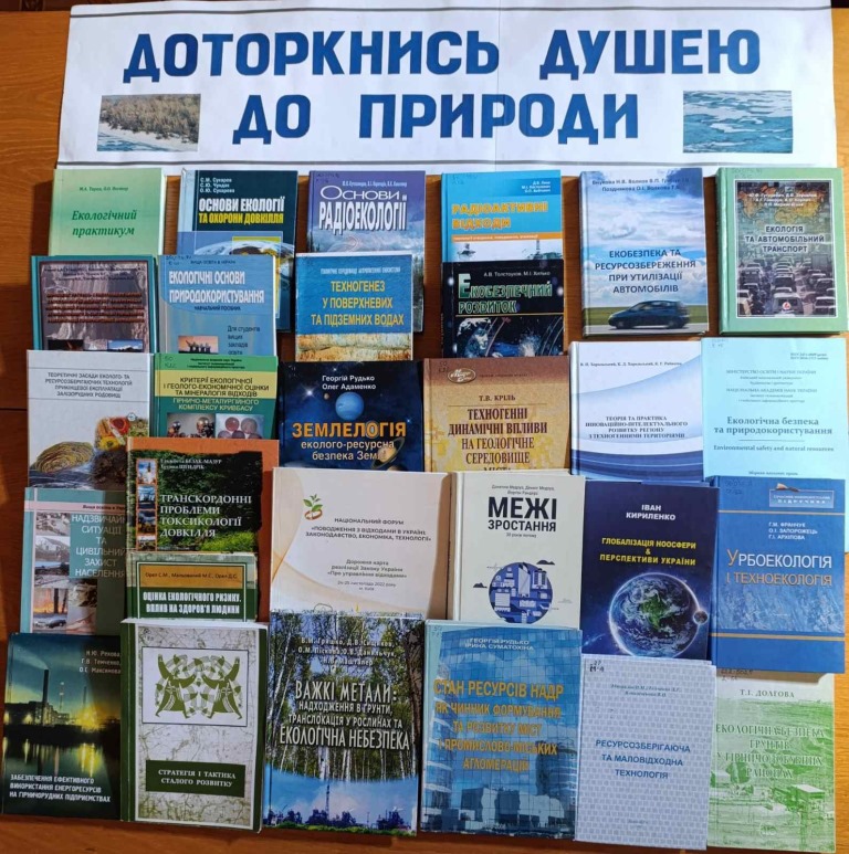 До вашої уваги пропонуємо тематичні книжкові виставки: «ДОТОРКНИСЬ ДУШЕЮ ДО ПРИРОДИ», “НАША ЗЕМЛЯ – НАШЕ МАЙБУТНЄ”. Представлена література про глобальні екологічні проблеми людства, екологічну безпеку в гірничопромислових районах, наслідки антропогенного впливу на довкілля та тенденції розвитку людської цивілізації. Відповідальні Людмила Баранова, Наталія Шапран.