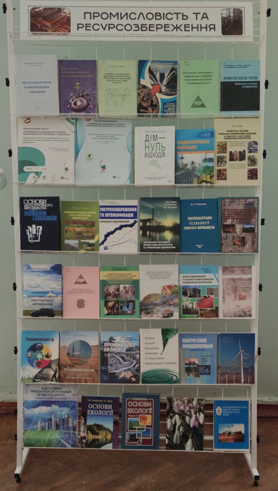 Сьогодні кожен має замислитися над власним «екологічним слідом» та техногенними викликами сучасності. Абонемент навчальної літератури підготував тематичну виставку «Промисловість та ресурсозбереження».