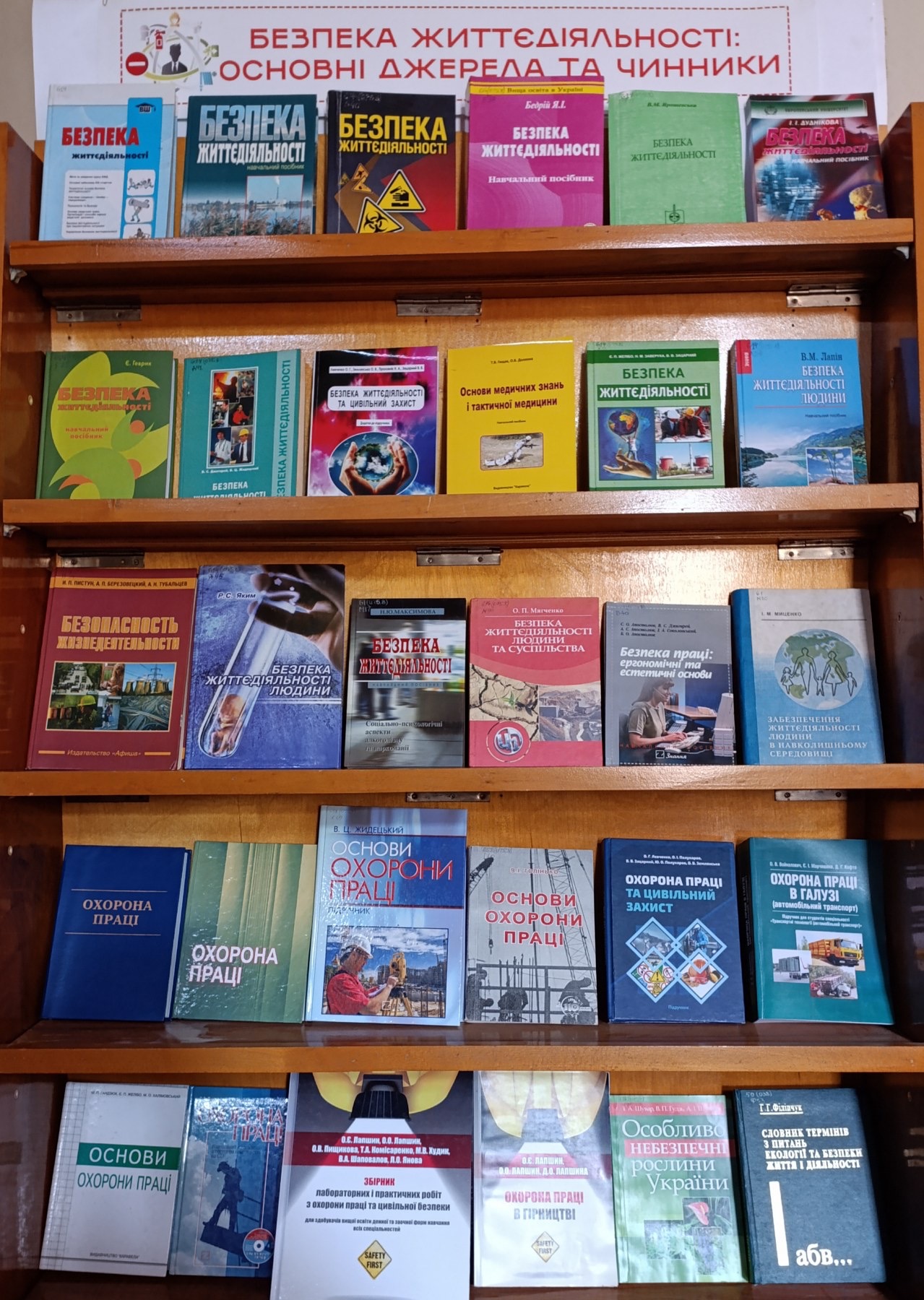 Абонементи наукової та навчальної літератури підготували низку заходів: віртуальний бібліографічний огляд «Серед пріоритетів – безпека» (відп. Людмила Баранова) та тематичну книжкову виставку «Безпека життєдіяльності: основні джерела та чинники» (відп. Юлія Мишко).