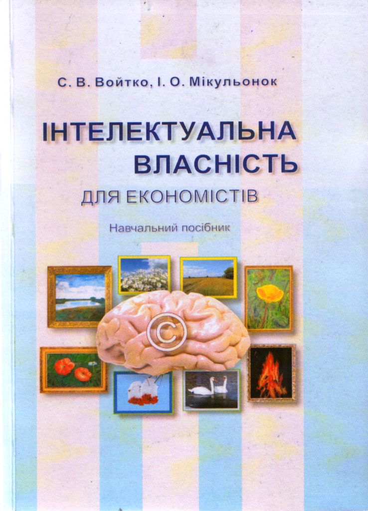 Войтко С. В. Інтелектуальна власність для економістів : навч. посіб. для студ., які навчаються за економ. спец. / С. В. Войтко, І. О. Мікульонок. – Київ : НТУУ “КПІ” Вид-во “Політехніка”, 2016. – 192 с. – Бібліогр. : с. 135-136. – 70 пр. – ISBN 978-966-622-711-2.