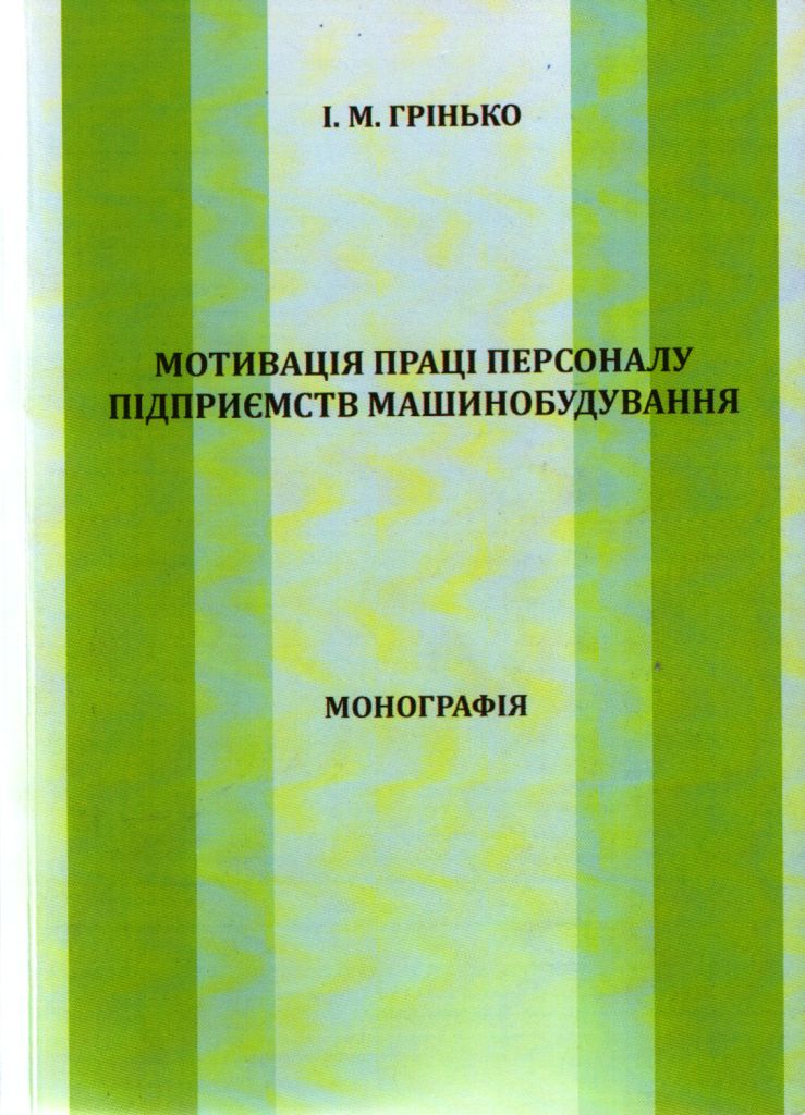 Грінько І. М. Мотивація праці персоналу підприємтсв машинобудування : монографія / І. М. Грінько. – Київ : НТУУ “КПІ” Вид-во “Політехніка”, 2016. – 240 с. – Бібліогр.: с. 218-237. – 50 пр. – ISBN 978-966-622-749-5.